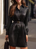 This refined shirt dress offers an effortlessly polished look with a modern, city-chic attitude. Designed with a classic collared neckline and a full button-front closure, the dress brings together timeless tailoring and subtle glamour.