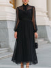 Mooyius captures understated romance with this flowing chiffon midi dress, crafted to bring elegance to both formal and semi-formal occasions. The sheer yoke and sleeves introduce delicate transparency, softening the structured bodice and creating an alluring yet refined effect. The bow-tie neckline adds a vintage-inspired charm, drawing attention upward and framing the face with timeless femininity.