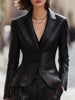 A classic notched lapel frames the neckline, while the single-button closure enhances its clean and minimalist profile. The sleek black finish ensures versatility, making it a statement piece that transitions seamlessly from boardroom power dressing to evening sophistication. Whether paired with matching leather trousers for a bold monochrome look or styled with tailored separates, this blazer is a symbol of confidence and elevated style.