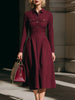 Mooyius presents a sophisticated shirt-style midi dress designed with timeless structure and elevated femininity. This deep burgundy dress features a pointed collar, polished button-front closure, and flap chest pockets, complemented by a defined waistline that flows into a beautifully pleated A-line skirt for a graceful, sculpted silhouette.