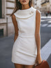 Mooyius presents the Chic Fold-Over Collar Sleeveless White Dress to elevate your sophisticated look. Elevate your wardrobe with this sophisticated white dress, featuring elegant pearl buttons and a sleek silhouette. Perfect for any elegant occasion.