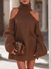 Mooyius presents a contemporary oversized knit dress that blends cozy texture with modern, statement-making details. Designed with a tall, structured turtleneck, the silhouette features bold cold-shoulder cutouts that create a striking contrast against the voluminous long sleeves. The relaxed, softly draped body offers effortless comfort while maintaining a chic, elevated look. Ribbed finishes add subtle structure, giving the dress a refined balance between laid-back ease and polished styling.