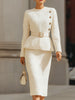 Elevate your sophistication with this Cream Tweed Peplum Jacket & Pencil Skirt Set. Crafted from textured tweed fabric, it features a peplum jacket with gold-tone buttons, a statement belt to cinch the waist, and a sleek pencil skirt for a polished, tailored silhouette.