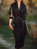Expertly tailored to accentuate the figure, this evening gown combines structure and fluidity in perfect harmony. The sheer overlay adds a sense of graceful movement, while the waist tie allows customizable shaping for a flattering silhouette. Thoughtful draping elevates the gown with subtle drama, making it a timeless piece for women who appreciate sophistication, refinement, and modern elegance in their formal wardrobe.