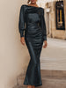 Mooyius presents an elevated satin evening dress designed for women who appreciate refined glamour and modern sophistication. This long-sleeve maxi silhouette is crafted to deliver a statuesque, graceful presence, combining fluid draping with a luxurious sheen.