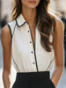 Mooyius presents the Elegant Sleeveless White Button-Down Blouse to elevate your sophisticated look.Introduce sophistication into your wardrobe with our elegant sleeveless white button-down blouse, designed for the modern woman who favors classic style with a contemporary twist. Featuring a crisp collar and sleek black piping, this blouse effortlessly combines structure with elegance.
