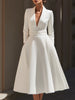 This stunning white satin A-line midi dress exudes timeless elegance and sophisticated charm. The deep V-neckline elongates the neckline and adds a dash of allure, while the structured bodice provides a tailored, flattering fit. Designed with a full, flowing skirt, the dress effortlessly moves with every step, creating an enchanting and graceful silhouette.
