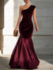 Mooyius presents a striking mermaid evening gown designed to embody modern glamour with timeless sophistication. This one-shoulder silhouette showcases a sculpted bodice that contours the figure with precision, enhanced by subtle gathered detailing that draws the eye toward the waist. The velvet upper transitions seamlessly into a flowing mermaid skirt, creating a dramatic sense of movement with every step. The asymmetrical neckline adds architectural interest, while the elongated hemline delivers an elegant, red-carpet-ready finish.