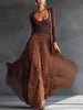 Breezy and feminine, this cocoa brown chiffon polka dot maxi dress effortlessly blends vintage charm with modern refinement. The soft pleats and airy volume create an elegant, romantic silhouette that moves beautifully with every stride. Its rich hue and playful dotted pattern make it an ideal seasonal piece for both daytime and evening styling.