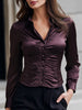Mooyius presents a refined satin blouse designed for women who appreciate tailored elegance and polished sophistication. This blouse features a smooth, lustrous finish that enhances its structured silhouette, making it ideal for both office settings and elevated evening occasions.