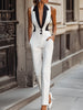 A plunging neckline and tapered trousers create a sleek, elongated look. Perfect for black-tie affairs, corporate galas, or fashion-forward soirées. The sleeveless cut ensures versatility across seasons. Pair with white or metallic heels to maintain a clean, sophisticated palette.