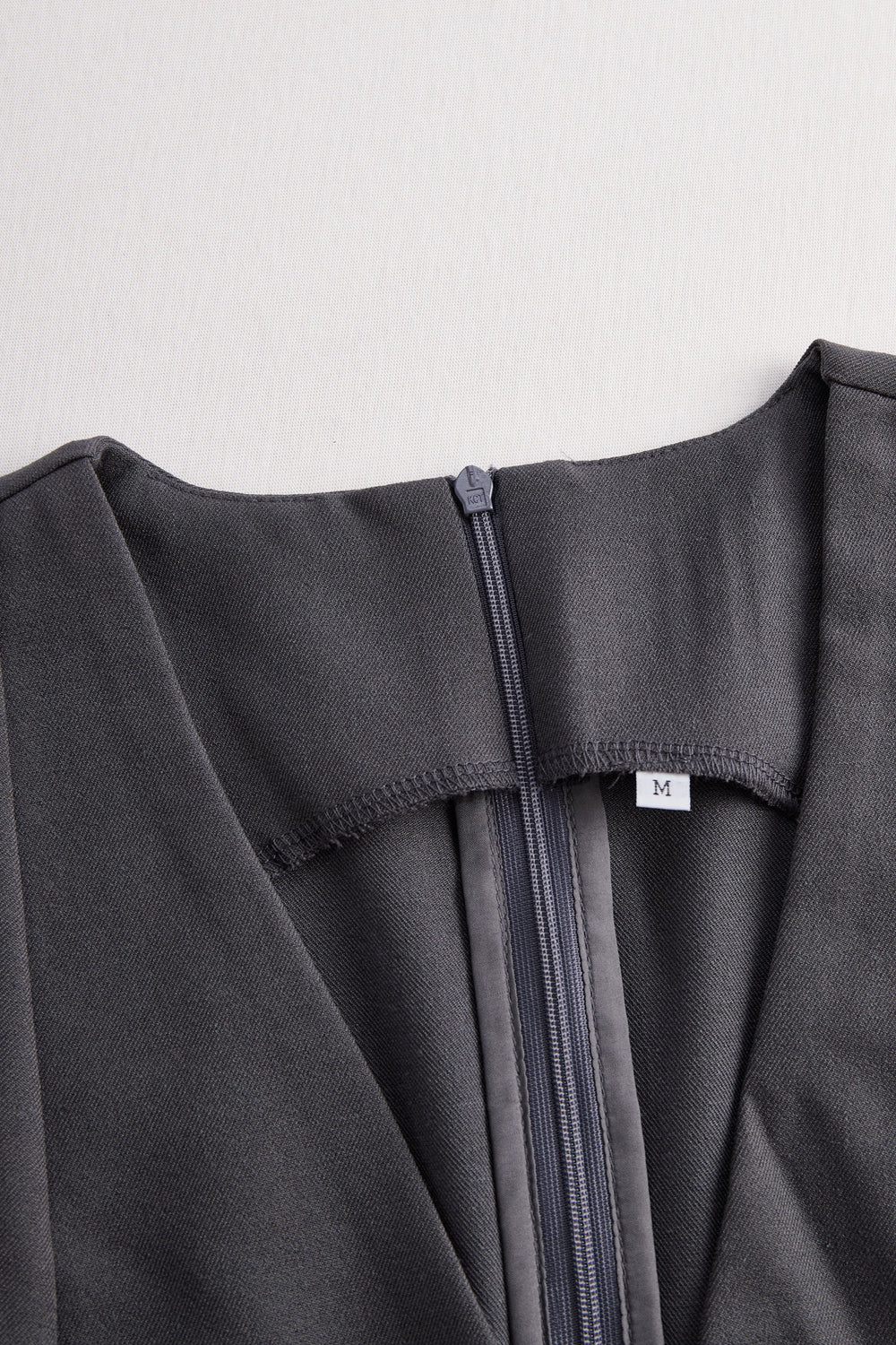 Mooyius presents the elegant sleeveless peplum jumpsuit, expertly tailored in a sleek charcoal gray. Designed with a deep V-neckline and structured peplum waist, this piece offers a refined silhouette that flatters your figure and brings a touch of modern glamour to any event. It’s the perfect choice for business meetings, evening gatherings, or any occasion where you want to make a bold, confident impression.