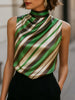 Bold and polished, this sleeveless satin top features elegant diagonal stripes in green, brown, and cream. The high neckline and fluid drape create a sleek silhouette for both work and evening settings.