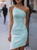 Mooyius presents the Stylish Asymmetrical Knit Bodycon Dress to elevate your sophisticated look. This chic one-shoulder mini dress features a trendy ribbed texture. The sleek blue hue adds a touch of freshness to your evening look.