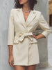 Mooyius introduces the Tailored Blazer-Inspired Mini Dress — a powerful blend of femininity and structure. This sharply designed piece features a notched lapel collar, double flap pockets, and a wrapped front that cinches at the waist with a matching fabric belt.