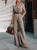 A modern wardrobe essential, this belted jumpsuit blends confidence with elegance. Its sharp tailoring and neutral hue make it versatile for day-to-night transitions, embodying the power and refinement of the contemporary woman.