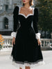 Discover the allure of timeless fashion with our Black Velvet Midi Dress. This exquisite piece is designed for those who appreciate a blend of classic elegance and modern sophistication. Made from rich black velvet, the dress features delicate lace detailing along the neckline and cuffs, creating a stunning contrast that elevates its luxurious appeal.