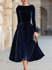 Mooyius presents an elegant velvet midi dress designed to embody sophistication, structure, and timeless femininity. This refined piece features a sculpted off-shoulder collar that frames the neckline with understated drama, complemented by long fitted sleeves and a beautifully gathered skirt. The luxurious drape and smooth sheen elevate its silhouette, offering a graceful sense of movement with every step.