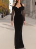 Mooyius presents an elegant evening gown designed to embody modern glamour with a refined, sculptural silhouette. This black velvet maxi dress features an alluring off-shoulder wrap bodice paired with a halter-inspired neckline, creating a sophisticated interplay of structure and softness.