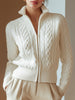 This cable-knit high-neck zip cardigan brings together timeless craftsmanship and contemporary ease, offering a versatile layer that elevates everyday dressing. Designed with a refined high collar, the piece frames the neckline with a clean, structured finish that adds sophistication whether worn zipped up for warmth or left slightly open for a relaxed look. The intricate cable-knit pattern across the front and sleeves showcases traditional knit detailing, giving the cardigan a rich texture and a sense of understated luxury.