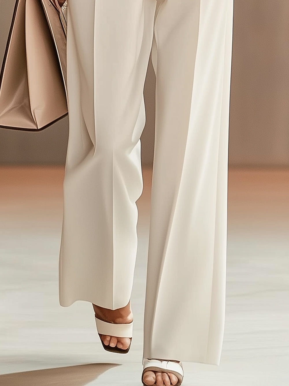 These white casual straight-leg pants offer a timeless and versatile look. The relaxed yet polished fit makes them perfect for a variety of occasions, providing both style and comfort.