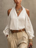 This chic white shirt combines the timelessness of a button-up with the trendy off-shoulder design, making it a versatile choice for any wardrobe. Pair with tailored pants or a skirt for a polished look.