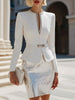 Paired with a silver sequin mini skirt, the ensemble achieves a harmonious balance between understated sophistication and bold glamour. The shimmering skirt catches light with every step, making it a show-stopping piece for evening events, gala dinners, or luxury gatherings. Styled with a metallic clutch, this set epitomizes contemporary elegance designed for the woman who seeks to stand out with confidence and grace.