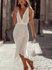 This white knit beach dress is a must-have for your summer wardrobe. Its airy texture and sheer design make it the perfect layering piece for your favorite swimsuits.