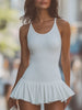 Mooyius presents the white ribbed skater mini dress, designed to flatter your figure with its fitted bodice and flared ruffle hem. The soft, stretchy rib-knit fabric provides comfort while keeping a chic silhouette, making it perfect for sunny days, vacations, or casual outings with friends.